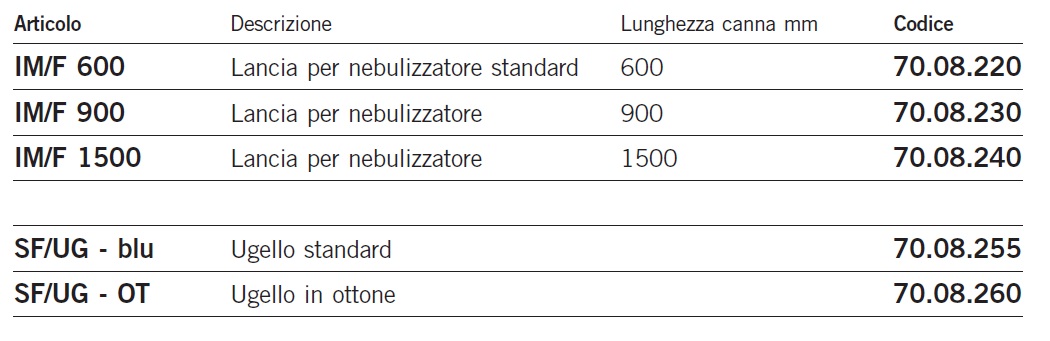 Accessori per nebulizzatori (lancia e ugello)