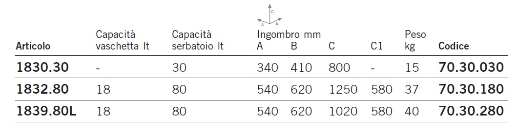 1830.30 cod. 70.30.030 1832.80 cod. 70.30.180 1839.80L cod. 70.30.280