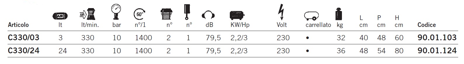 Completo di pressostato, valvola di ritegno e sicurezza, manometri, rubinetto rapido e scarico condensa.