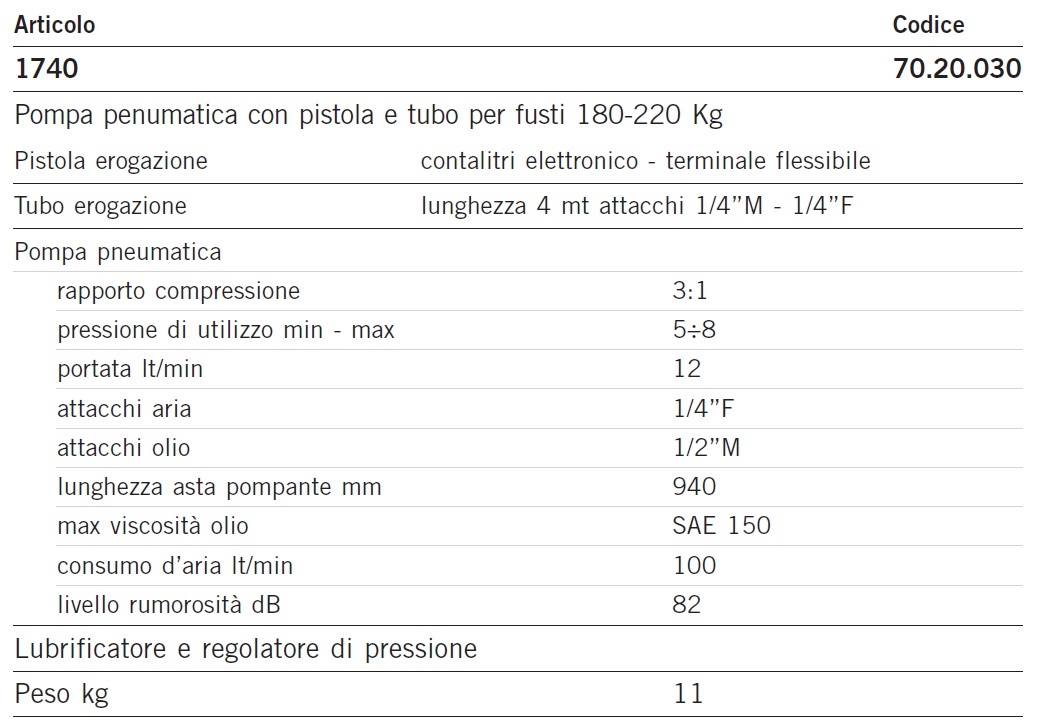 Pompa pneumatica con pistola e tubo per fusti 180-220 Kg