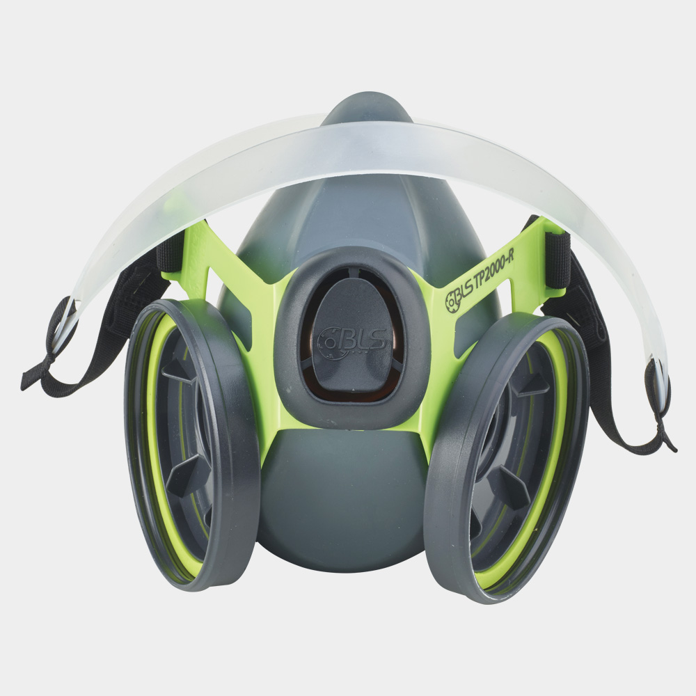 In silicone. Regolazione della bardatura facile e sicura. Provvista di fibbia per aggancio alla nuca. Con valvola di espirazione. Certificazione CE – norma EN140:1998.
