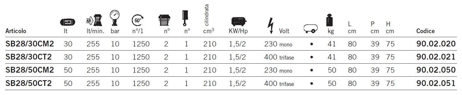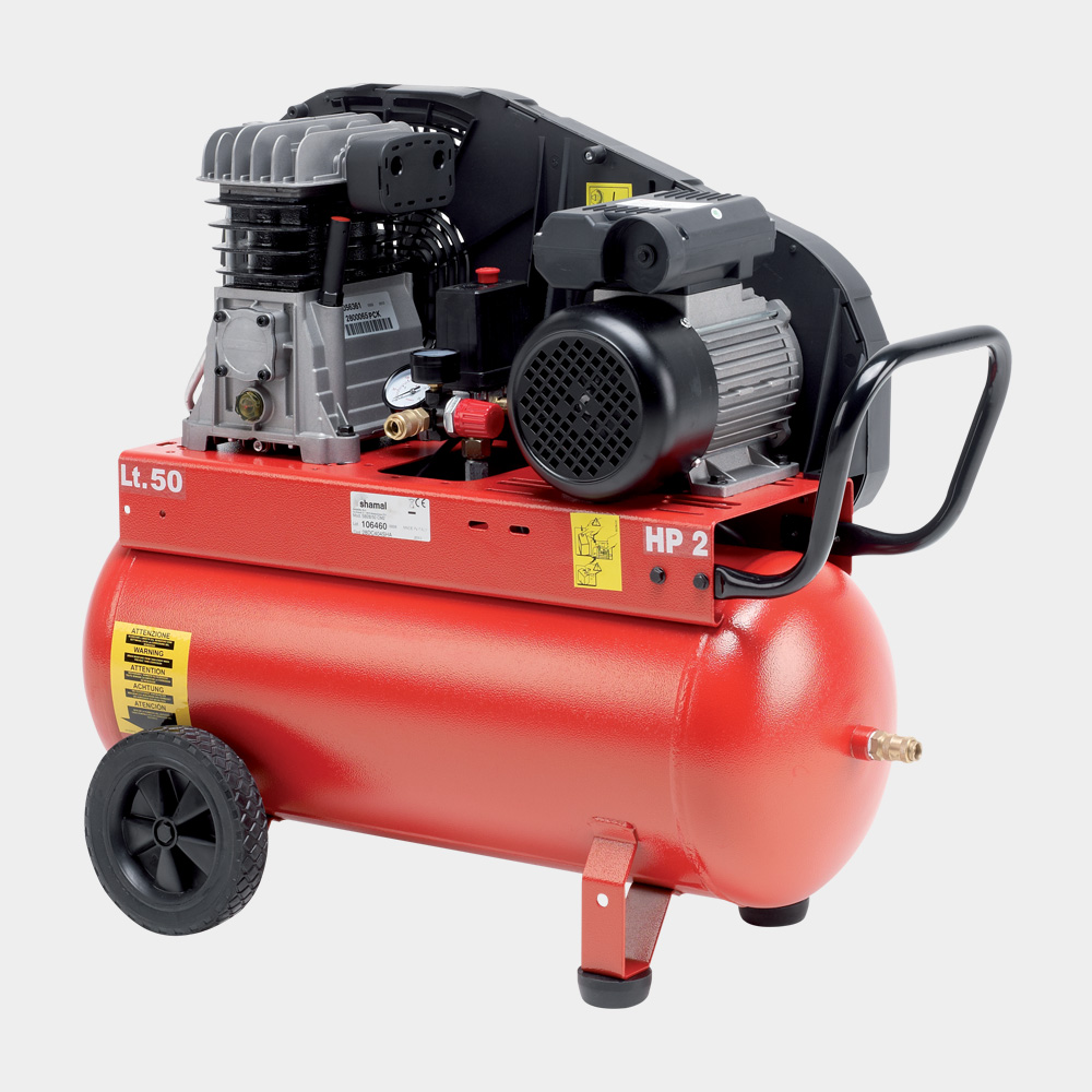 Forniti completi di pressostato, valvola di sicurezza, manometro, riduttore di pressione con filtro, maniglia di trasporto, rubinetto linea e scarico condensa.
