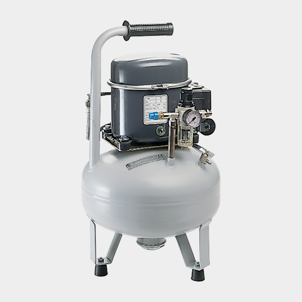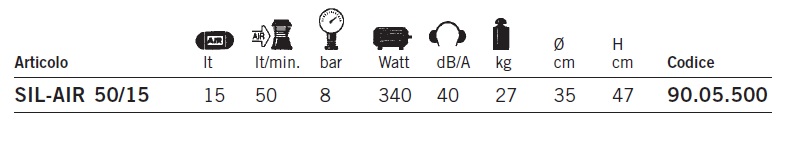 Ideale per applicazioni dove è richiesta una piccola produzione d’aria ma con la minima rumorosità. Fornito completo di serbatoio, pressostato, valvola di sicurezza, manometri, riduttore di pressione con filtro, scarico di condensa.