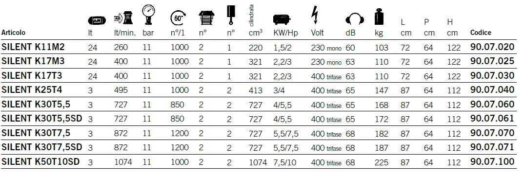 Ideale per laboratori, officine meccaniche, falegnamerie, carrozzerie dove è richiesta una buona produzione d’aria con un basso livello di rumorosità.